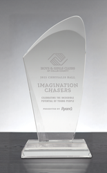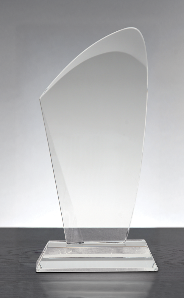 The Caspian Award features a sleek, contemporary silhouette with a graceful curved top that evokes motion and achievement. Crafted from clear optical crystal, this freestanding design rests on a thick, polished crystal base for added stability and presence. The smooth surface provides ample space for deep-etch or full-color personalization, making it ideal for corporate recognition, milestone achievements, and leadership honors. Elegant and modern, the Caspian Award delivers a refined statement of excellence.